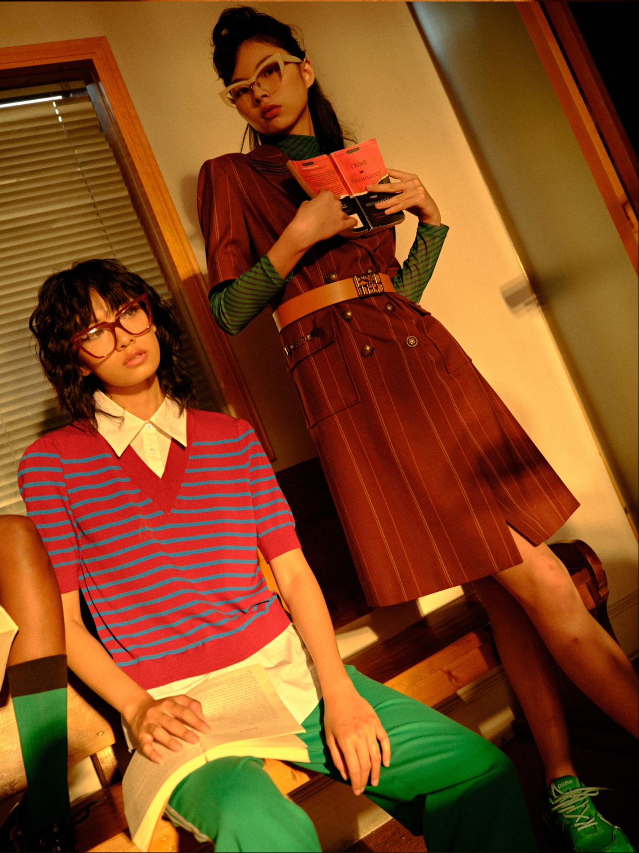 高筒袜复古配件与活跃醒目的亮色呈现学院新风格。